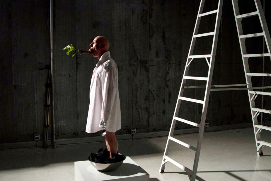 “I am a Performance Artist. I devise highly stylized situations with various hybrids of time-based forms. I project images and actions with abundant focus to create performance works that are both abstract and accessible. I strive to challenge expectations and champion dialogues between artistic mediums. To this end, I employ a vast range of formal qualities and ideologies when creating a work of Performance Art.