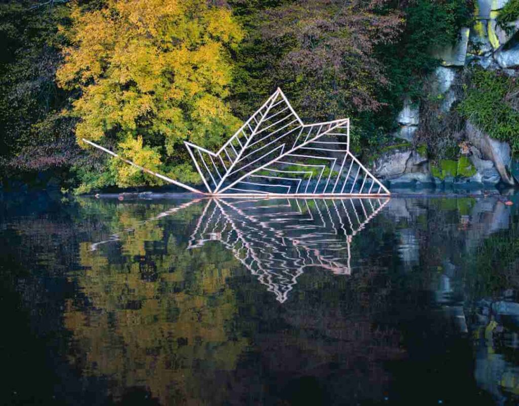 Die meisten seiner Arbeiten sind jedoch weit weniger monumental. Eher feinfühlig arrangiert Nils-Udo, was er vorfindet – Steine, Zweige, Blätter, Blüten, Beeren, Sand, Salz –, und transformiert sie in Bilder, Metaphern und Symbole von oft poetischer Intensität.