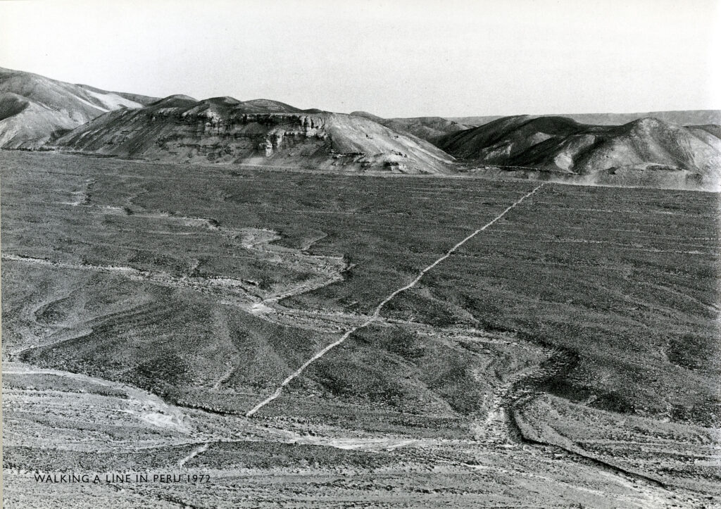 „Richard Long has been in the vanguard of conceptual art in Britain since he created A Line Made by Walking over half a century ago in 1967, while still a student. This photograph of the path left by his feet in the grass, a fixed line of movement, established a precedent that art could be a journey. Through this medium of walking, time, space and distance became new subjects for his art. From that time he expanded his walks to wilderness regions all over the world, including a walk in the Alps that was documented by his first text work for the seminal exhibition of Minimal and Conceptual works entitled When Attitude Becomes Form at the Kunsthalle Bern in 1969.